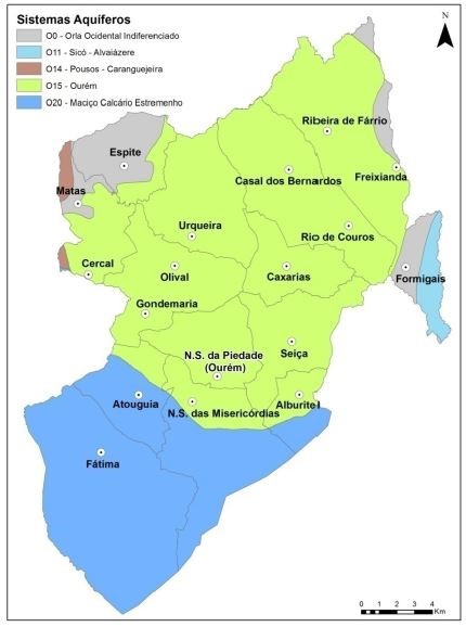 O sistema aquífero de Ourém corresponde a uma bacia sedimentar com uma área de 316 km2, do Cretácico, localizada na Unidade Hidrogeológica da Orla Ocidental, localizado essencialmente dentro dos limites do concelho de Ourém (259 km2). As bacias hidrográficas representadas neste aquífero são a do rio Mondego, rio Lis e rio Tejo, sendo esta última a principal bacia drenante das ribeiras da área do sistema aquífero.