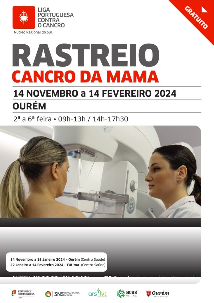 A Liga Portuguesa Contra o Cancro – Núcleo Regional do Sul (LPCC-NRS), em parceria com a Administração Regional de Saúde de Lisboa e Vale do Tejo (ARSLVT) e o ACES Oeste Sul, anuncia a continuidade do Rastreio do Cancro de Mama no Município de Ourém.